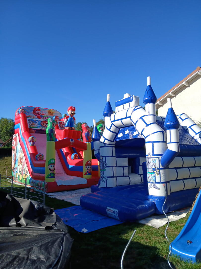 Le toboggan Mario : un toboggan gonflable fun et coloré, idéal pour la glisse et l’amusement des petits comme des grands